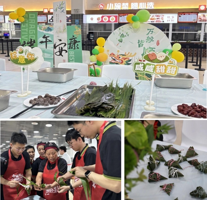 二十余位同事齐聚食堂,亲手制作端午美味。粽叶、糯米、红枣、五花肉……食材准备齐全,大家边学边包,有的手法娴熟,包出的粽子棱角分明;有的初次尝试,粽子造型“创意十足”。尽管形状各异,但每个粽子都饱含着节日的祝福与温情。