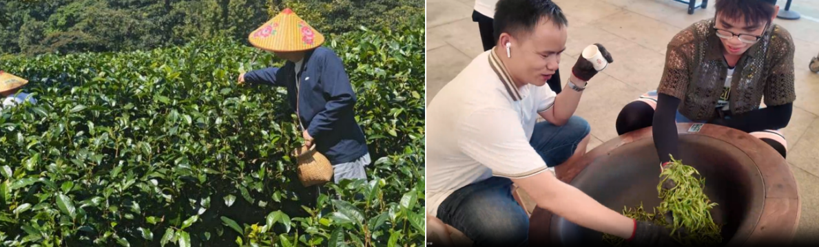 在象窝山的第二天,我们沉浸于茶香与自然之中。大家观看了精彩的茶艺表演,参观禅茶博物馆,在专业讲解中感受“禅茶一味”的文化魅力。大家还亲手参与采茶、制茶,沉浸式了解茶叶从田间到杯中的部分过程。午间,我们享用了以茶入馔的特色“茶叶宴”,一道道创意菜肴清新可口,展现了茶文化与美食的完美融合。