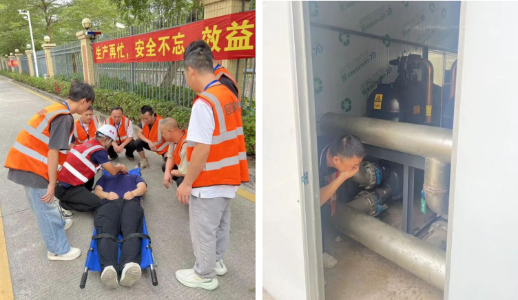 在触电事故应急演练中,模拟了生产调试人员不慎触电的紧急情况。现场人员严格执行“先断电、后施救”原则,迅速切断电源并实施救援,展现了高效的应急处置能力。
