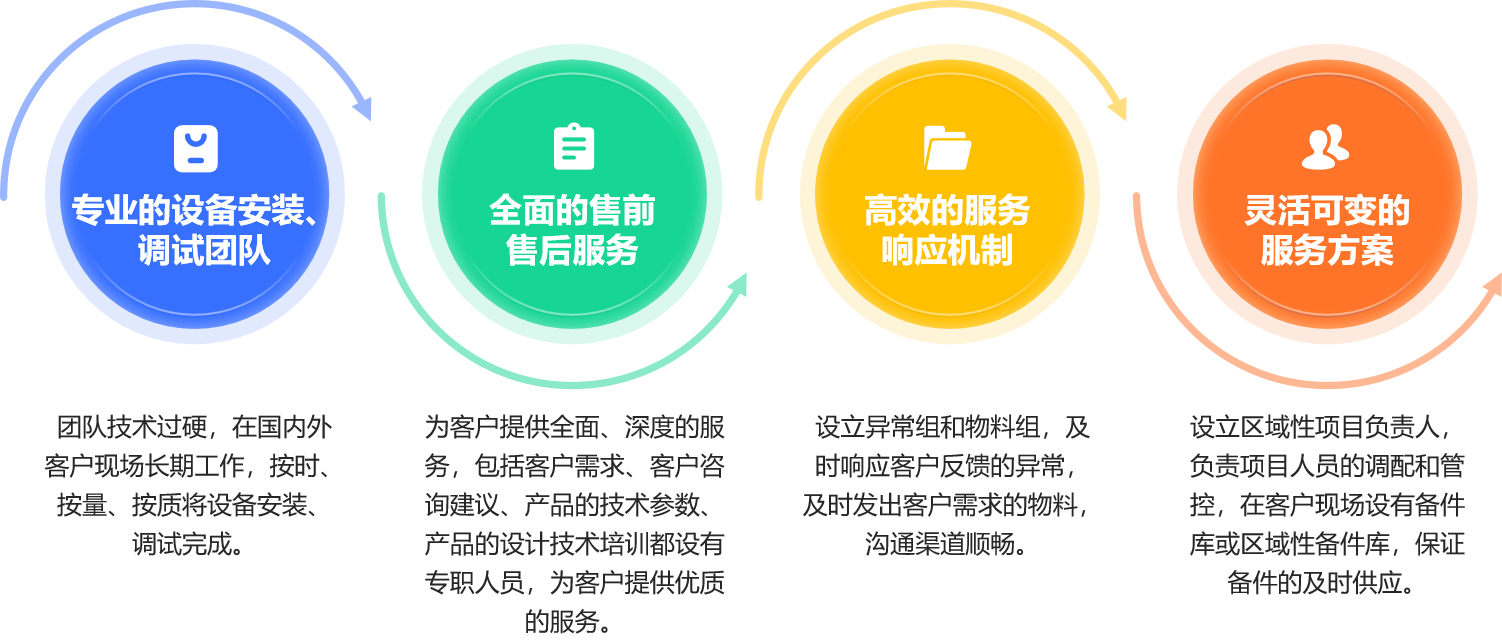 公司采取以销定产的生产模式,能够针对不同客户的技术需求进行个性化设计和定制,最大程度地满足不同客户的差异化产品技术需求,并致力于提供高水准的服务,同时公司售后技术服务体系健全,专业化程度高,响应速度快,还能提供生产线的高水平工艺技术、生产管理支持等增值服务项目,为客户项目顺利生产提供支持。